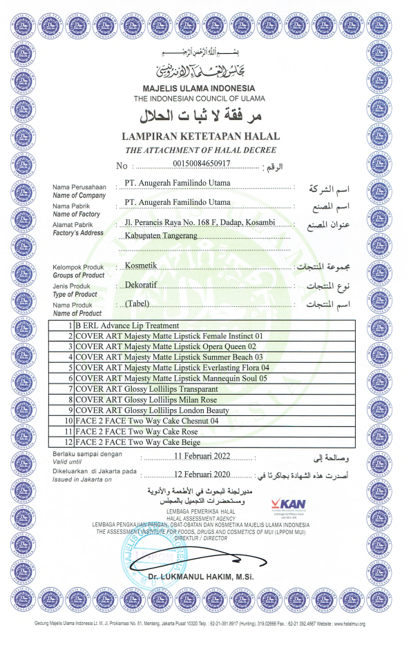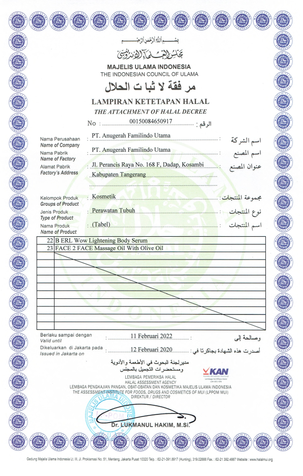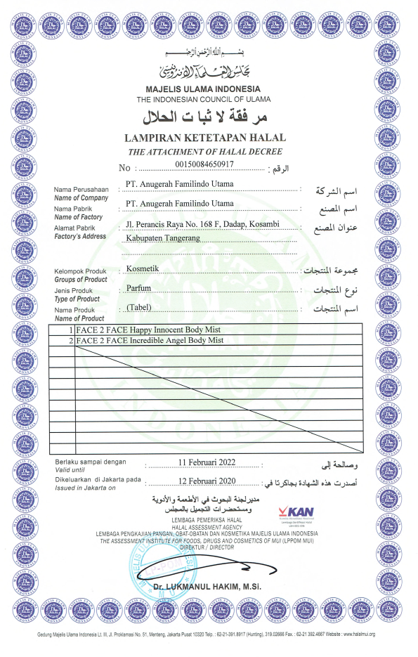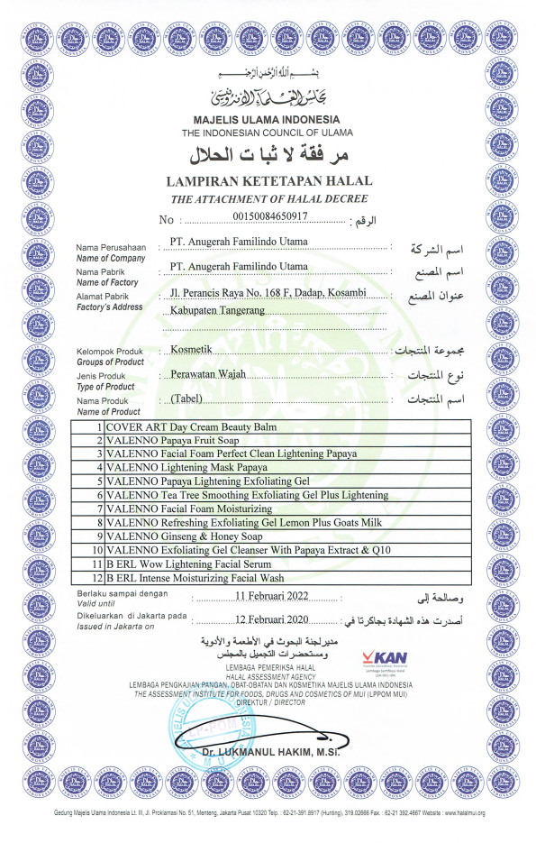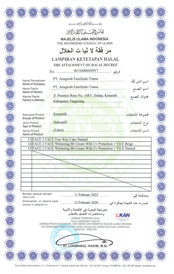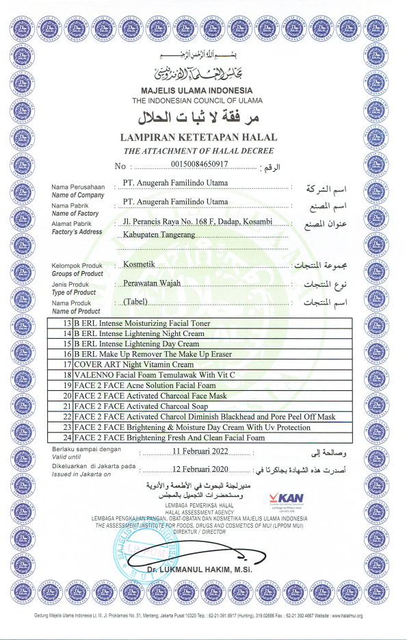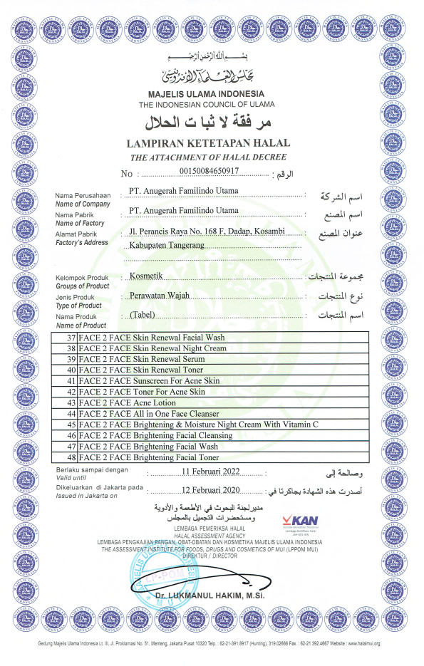 Sertifikat Ketetapan Halal Perawatan Wajah Bagian Pertama