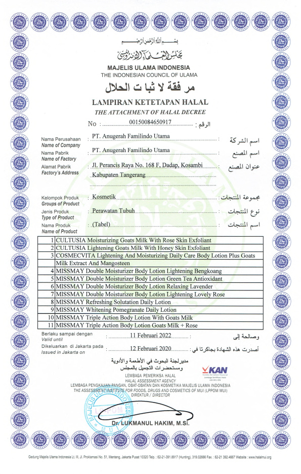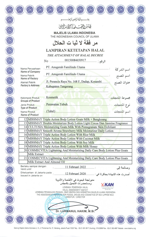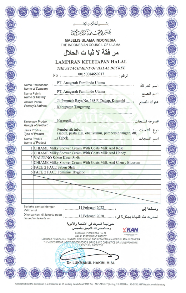 Sertifikat Ketetapan Halal Perawatan Tubuh Bagian Kedua