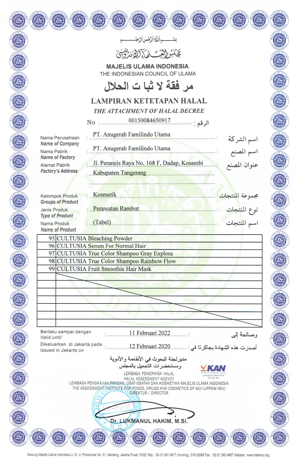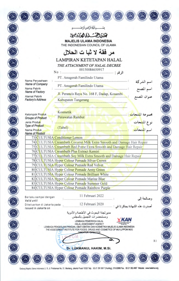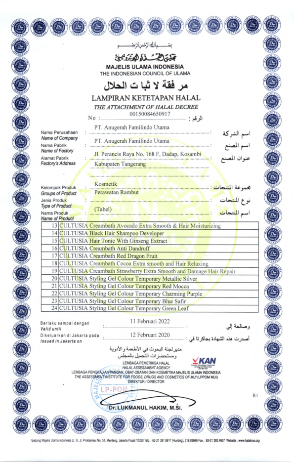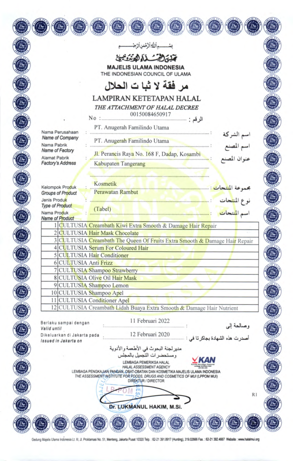 Sertifikat Ketetapan Halal Perawatan Rambut Bagian Pertama