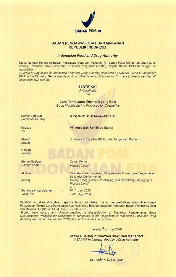 Sertifikat Cara Pembuatan Kosmetik yang Baik untuk Sediaan Cairan Kental