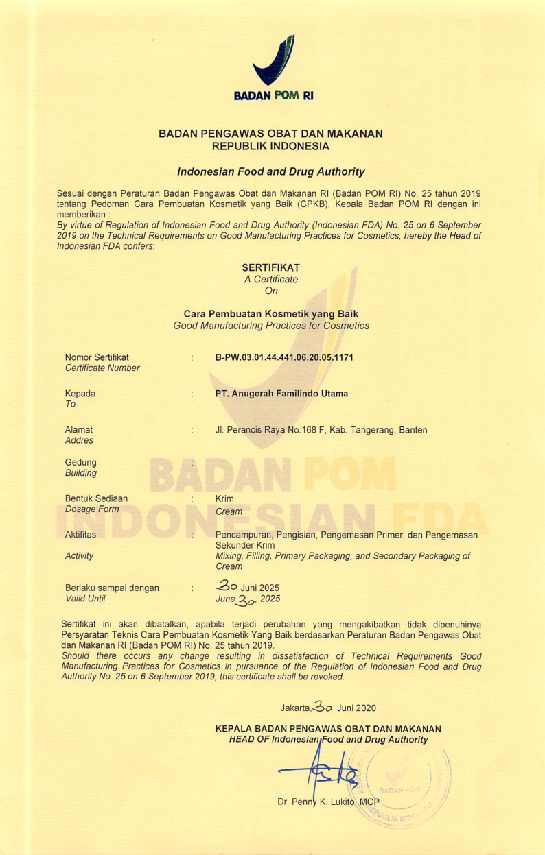 Sertifikat Cara Pembuatan Kosmetik yang Baik untuk Sediaan Cream