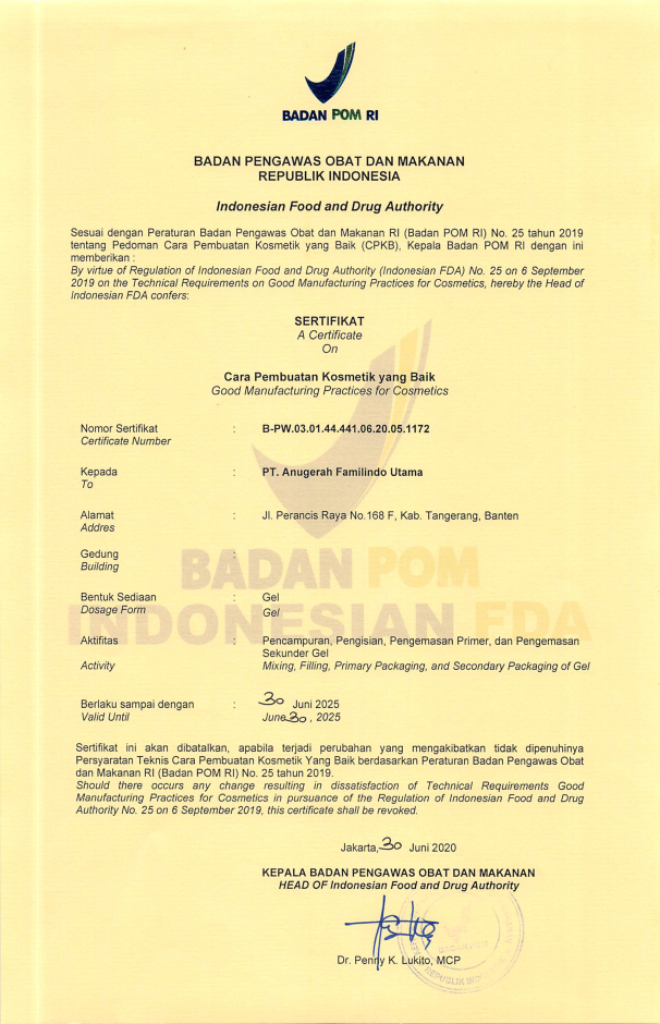 Sertifikat Cara Pembuatan Kosmetik yang Baik untuk Sediaan Gel