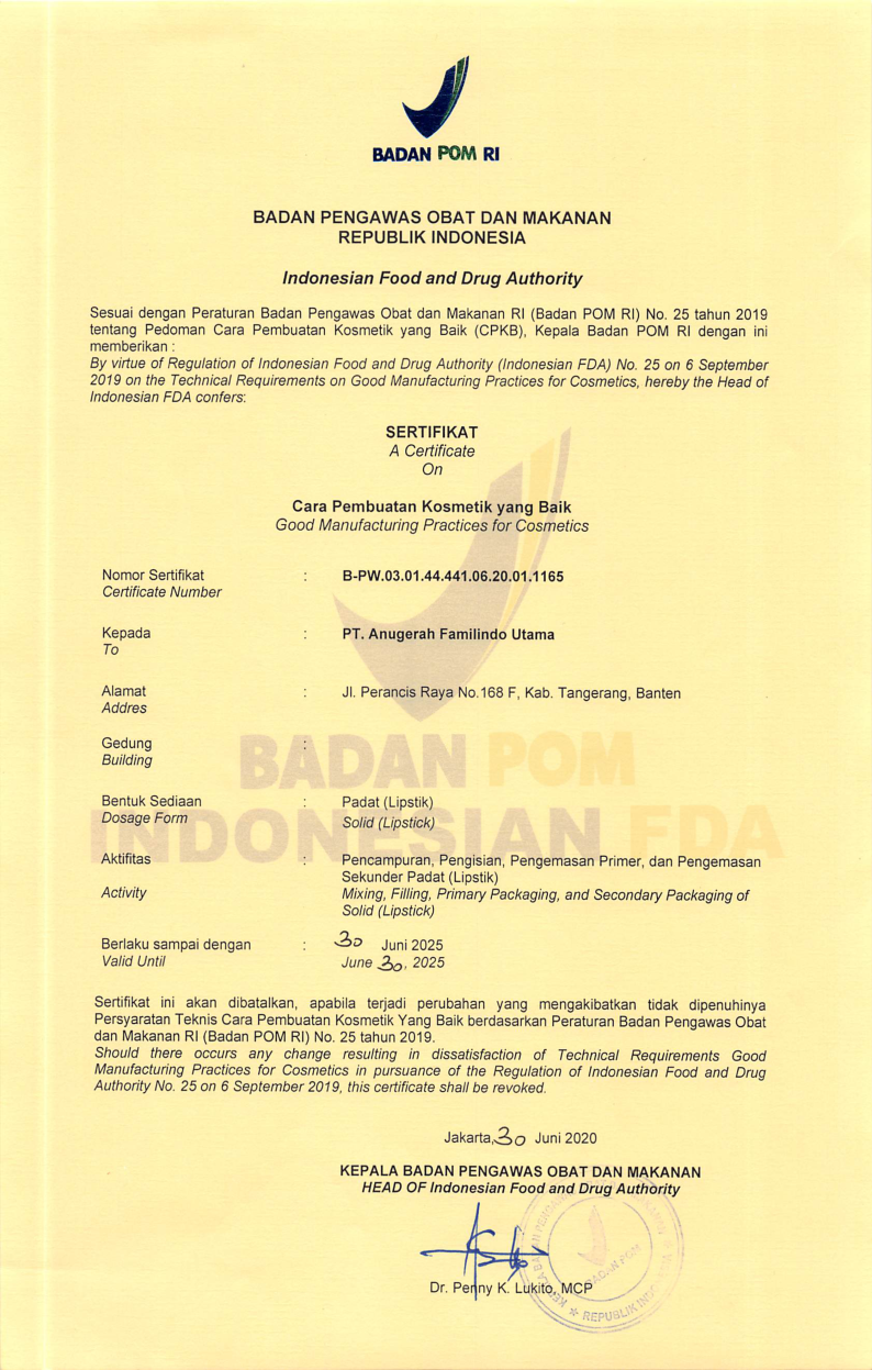Sertifikat Cara Pembuatan Kosmetik yang Baik untuk Sediaan Lipstik