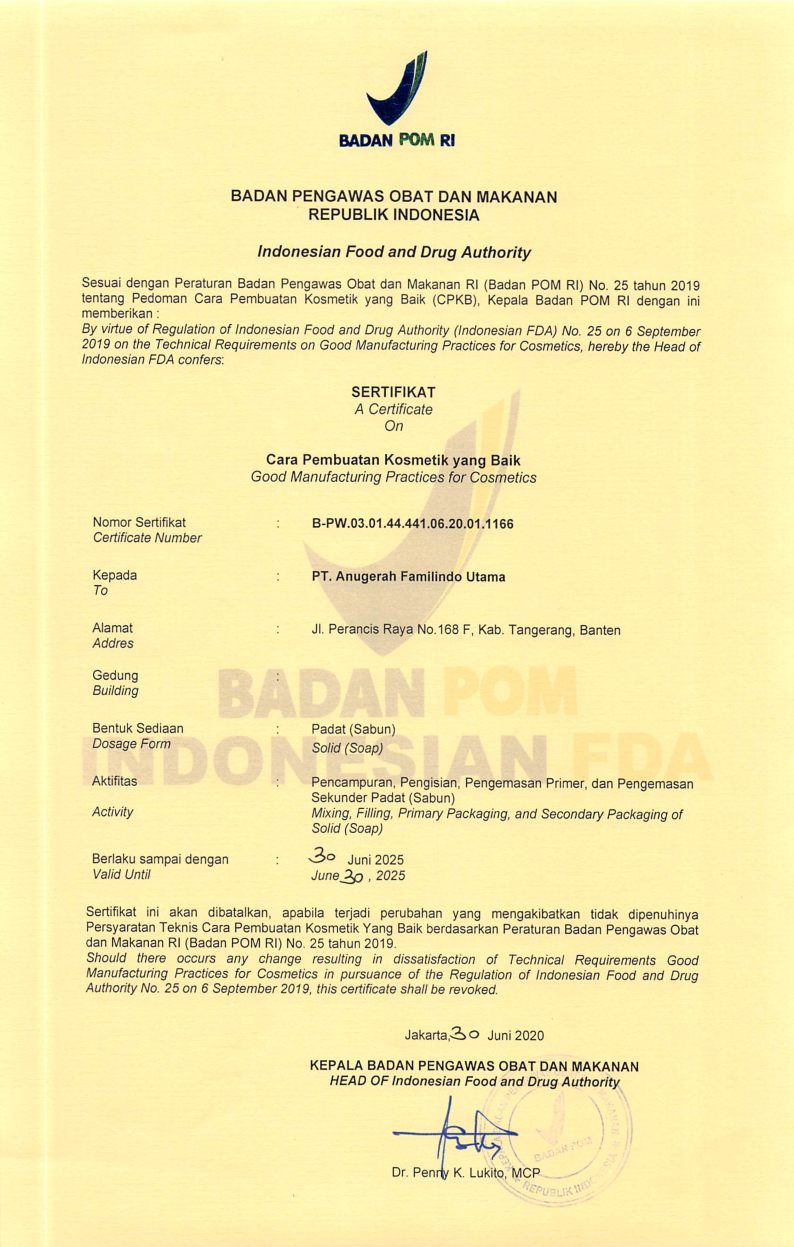 Sertifikat Cara Pembuatan Kosmetik yang Baik untuk Sediaan Sabun (Padat)
